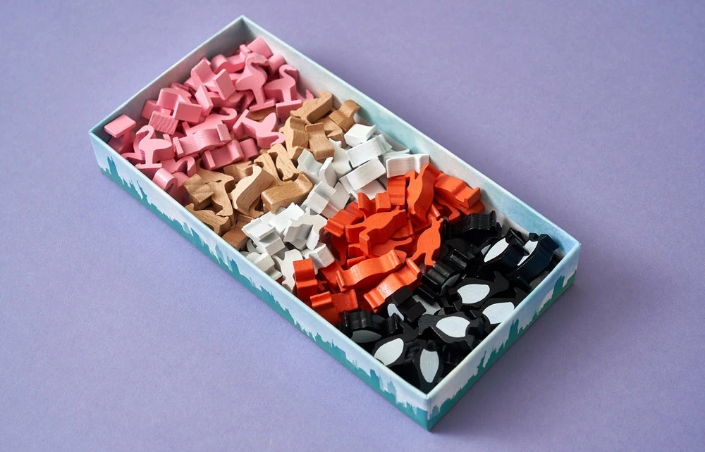 In New York Zoo, you are constructing an animal park. Build animal enclosures, introduce new animals and raise their offspring. The game play is straight forward as you have only two turn options: Puzzle a new enclosure tile into your zoo area or gain new animals to populate your animal encounters. But be sure to time your actions well since you want your zoo to participate in as much animal breeding as possible.
