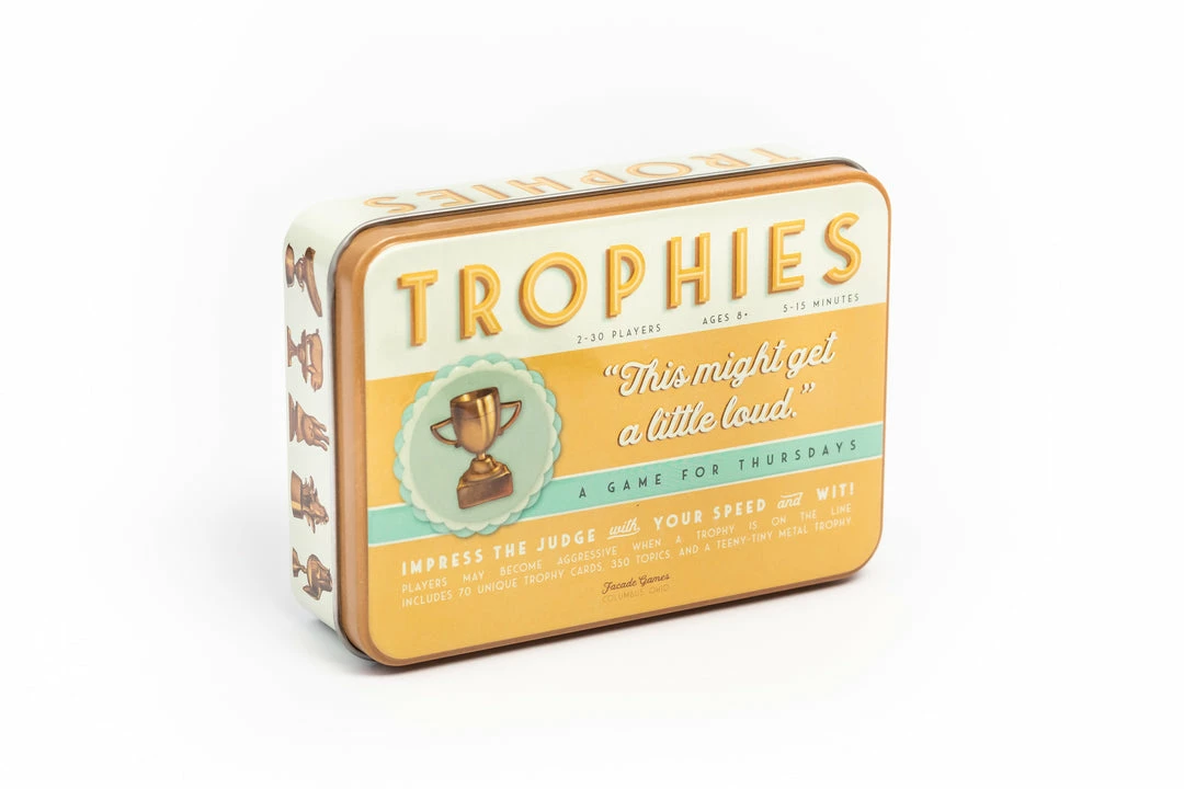 Trophies is the first in the “Games for Thursdays” line of party games by Facade Games.