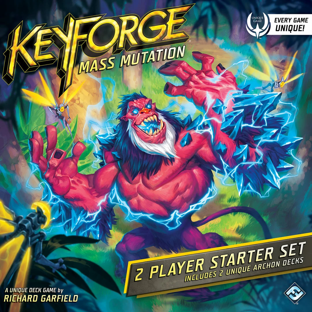 Change is coming to the Crucible with the Mass Mutation set for the worldβs only Unique Deck Game, KeyForge. Over 200 brand-new cards now enter the cardpool in the gameβs fourth set, and the mutative power of the dark Γ¦mber has changed many of them, creating strange and unknown versions of once-familiar creatures. As gigantic creatures stretching across two cards lumber their way into battle, and House Sanctum makes its triumphant return, there has never been a more impactful time to leap into the fast-paced duels of KeyForge.