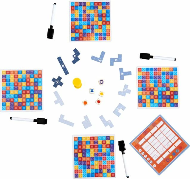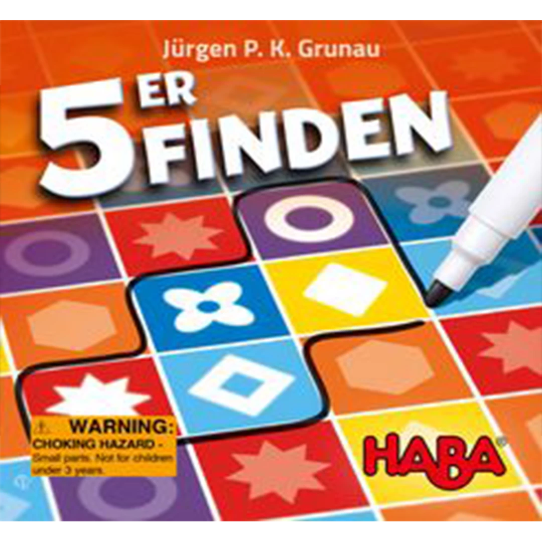 5 dice, 5 rounds 5ER FINDEN! Everyone races to find different FIVE shapes on their own boards and outlines them as they find them. But be careful space is limited and every shapes must contain all of the rolled symbols!