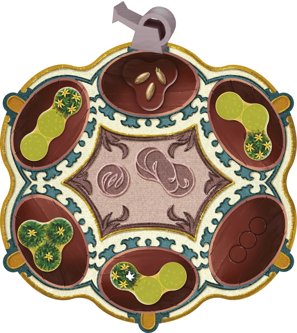From the award-winning designer Bruno Cathala,Β IshtarΒ is a game in which you play the role of a gardener aiming to transform the dry desert into the Lost Hanging Gardens of Babylon. To accomplish your mission, you will have to plant flowers, which, if you place them well, can help you gather precious gems and activate actions. Whether to buy Trees (which will block the link between two Flower spots, as well as earning you points) or to purchase upgrades (such as getting two more points per Tree card at the end of the game), collecting gems will be a crucial part of the game. Get them before your opponents, recruit apprentices, send them to earn points in the copses of flowers you have created, block others and think carefully of the upgrades to purchase if you want to become the best gardener at the end of the game!