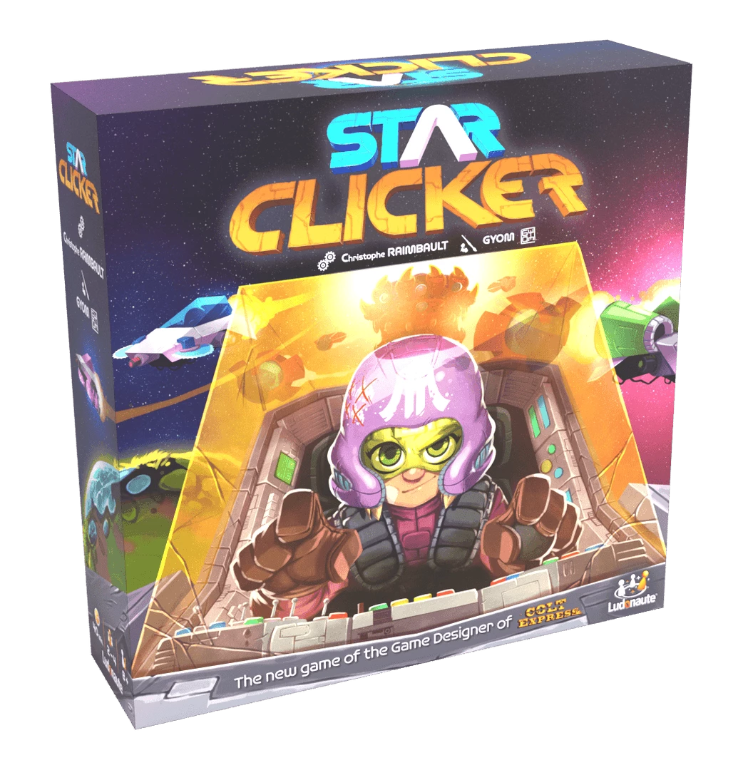 Star ClickerΒ is the new cooperative game of Christophe Raimbault – author ofΒ Colt ExpressΒ – in which players are kids trying to save their planet from evil aliens while their parents are in mission far far away.