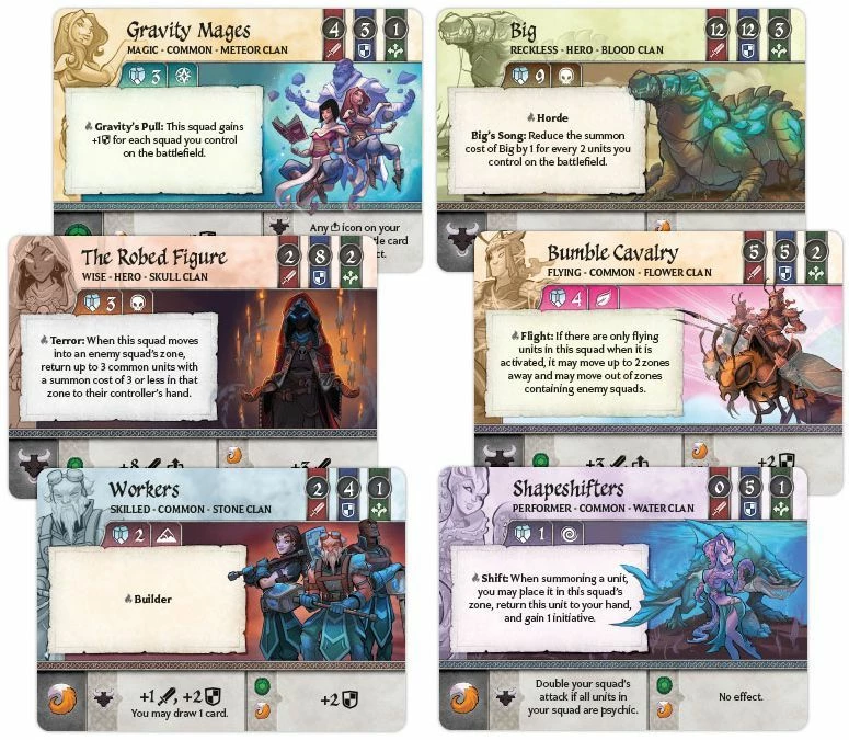 In every game ofΒ Crystal Clans, you go to battle with unique armies, seeking to outmaneuver your opponent and lead your squad to victory. Six clans stand ready to battle for dominance, including the adaptable Water Clan, the peaceful Flower Clan, the relentless Skull Clan, the innumerable Blood Clan, the wise Meteor Clan, and the unyielding Stone Clan. Each clan’s cards can be used in multiple ways, giving you more options and adding surprise to each battle. The first clan to claim four crystals wins the game and fulfills their destiny to dominate the world.