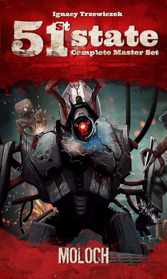 51st State is a card game set in the Neuroshima universe, from Portal Games best-selling role-playing game. This new expansion brings Moloch the harrowing, destructive force of Neuroshima to the foreground of your playing experience. It is also a special addition to 2020, the Year of Moloch, a celebration of the 10th anniversary of the 51st State.