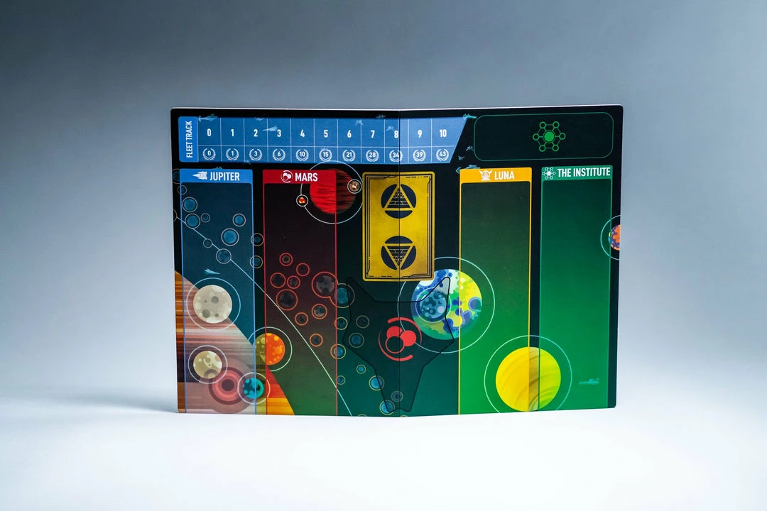Red Rising is a hand-management, combo-building game for 1-6 players (45-60 minute playing time). You start with a hand of 5 cards, and on your turn you will deploy 1 of those cards to a location on the board, activating that cardโs deploy benefit. You will then gain the top card from another location (face up) or the deck (face down), gaining that locations benefit and adding the card to your hand as you enhance your end-game point total. If at any point youโre really happy with your hand, you can instead use your turn to reveal a card from the top of the deck and place it on a location to gain that locationโs benefit.