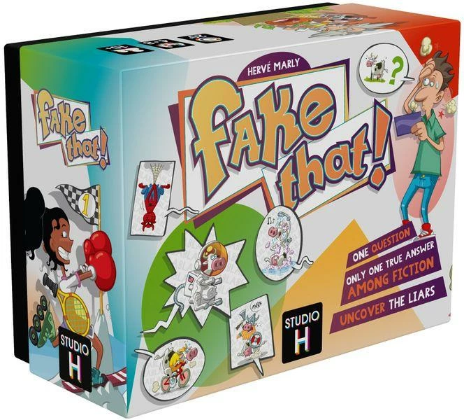 In each round of Fake That!, the player in the role of “Gullible” will ask a wacky question. Each of the other players must answer either the crazy truth or…a big fat lie! Will the liars prove convincing enough? Will Gullible succeed in uncovering all of them without pointing out the right answer?
