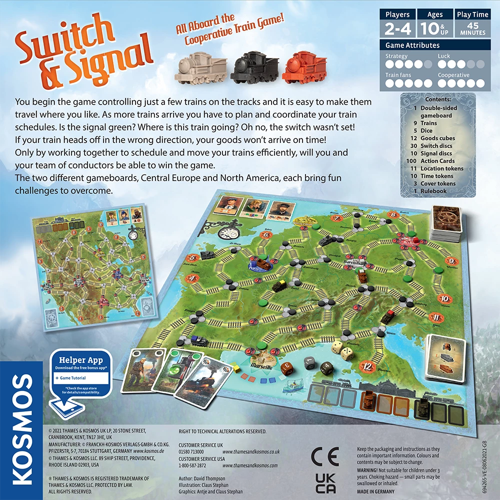 The railways run at different speeds in the co-operative gameย Switch & Signal, so players have to coordinate well to transport goods to their destination without wasting time. The journey goes across Europe, the United States, and Canada. Thanks to simple rules, the game can start right away. Time is running out…